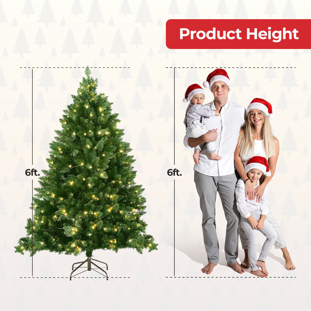 Pre-Lit Convenience: This tree comes pre-strung with 350 integrated LED lights for instant sparkle and stress-free setup. Just switch it on to enjoy a beautifully lit centrepiece, ready for your ornaments and finishing touches.