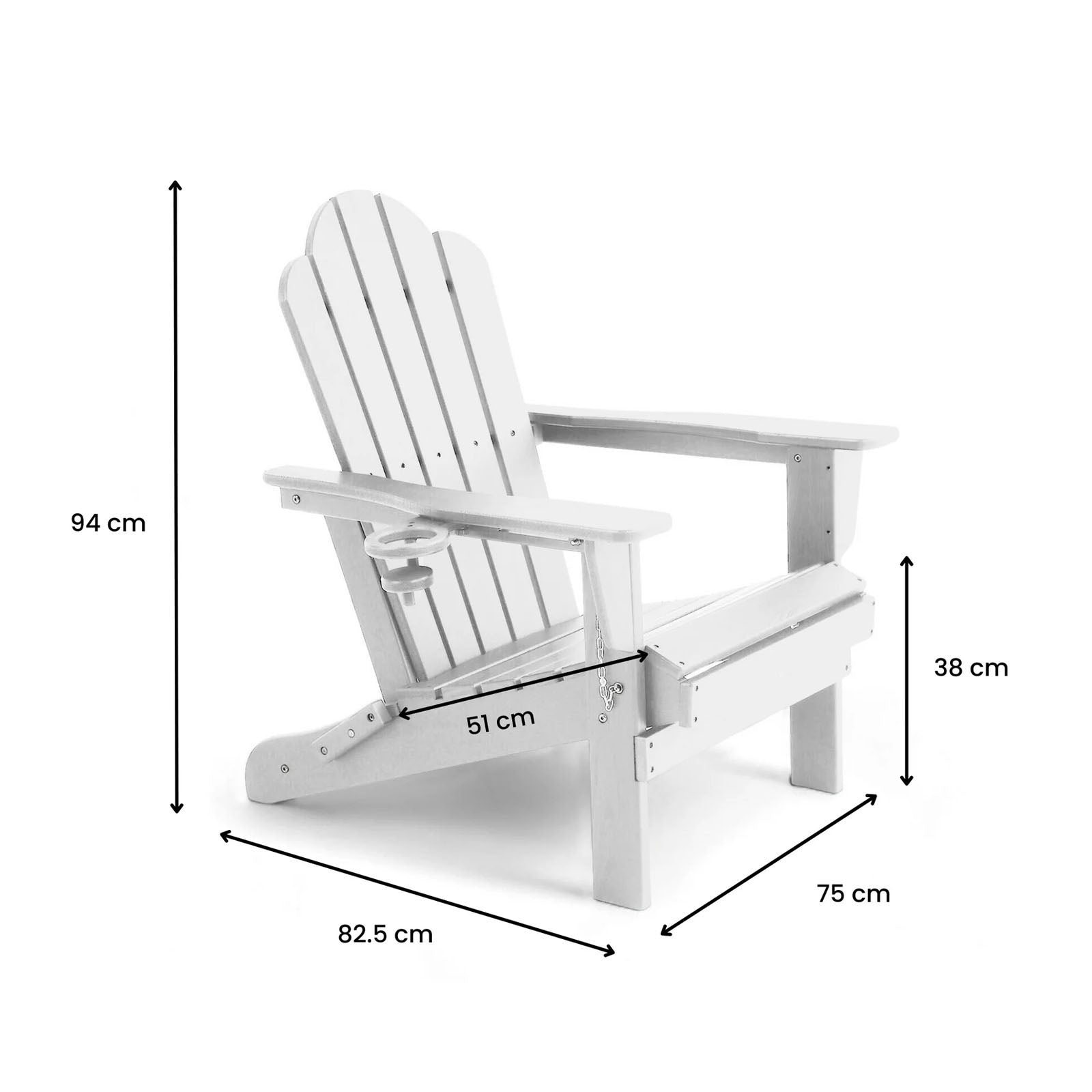 Get ready to relax like never before with this outdoor chair! Add a splash of colour and comfort to your outdoor space with this stylish blue Adirondack Chair, featuring a design inspired by traditional Cape Cod style. It’s your go-to for lazy afternoons on the patio, backyard hangouts, or cosy nights by the fire pit. With a perfect blend of elegance and practicality — and a realistic poly wood look — this chair is built for every outdoor moment, come rain or shine.