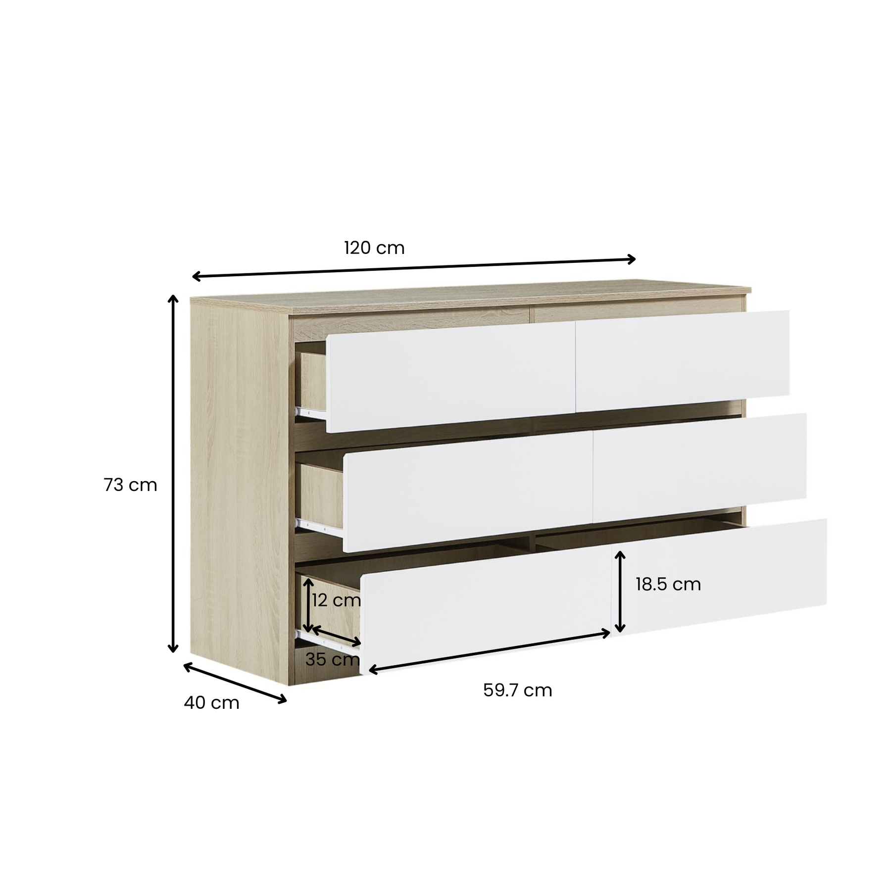 Spacious Storage: Each of the six large drawers can hold up to 8kg, making them perfect for an array of items, from wardrobe essentials to children's toys. The top surface provides an ideal spot for displaying personal items, adding a personal touch to your space.