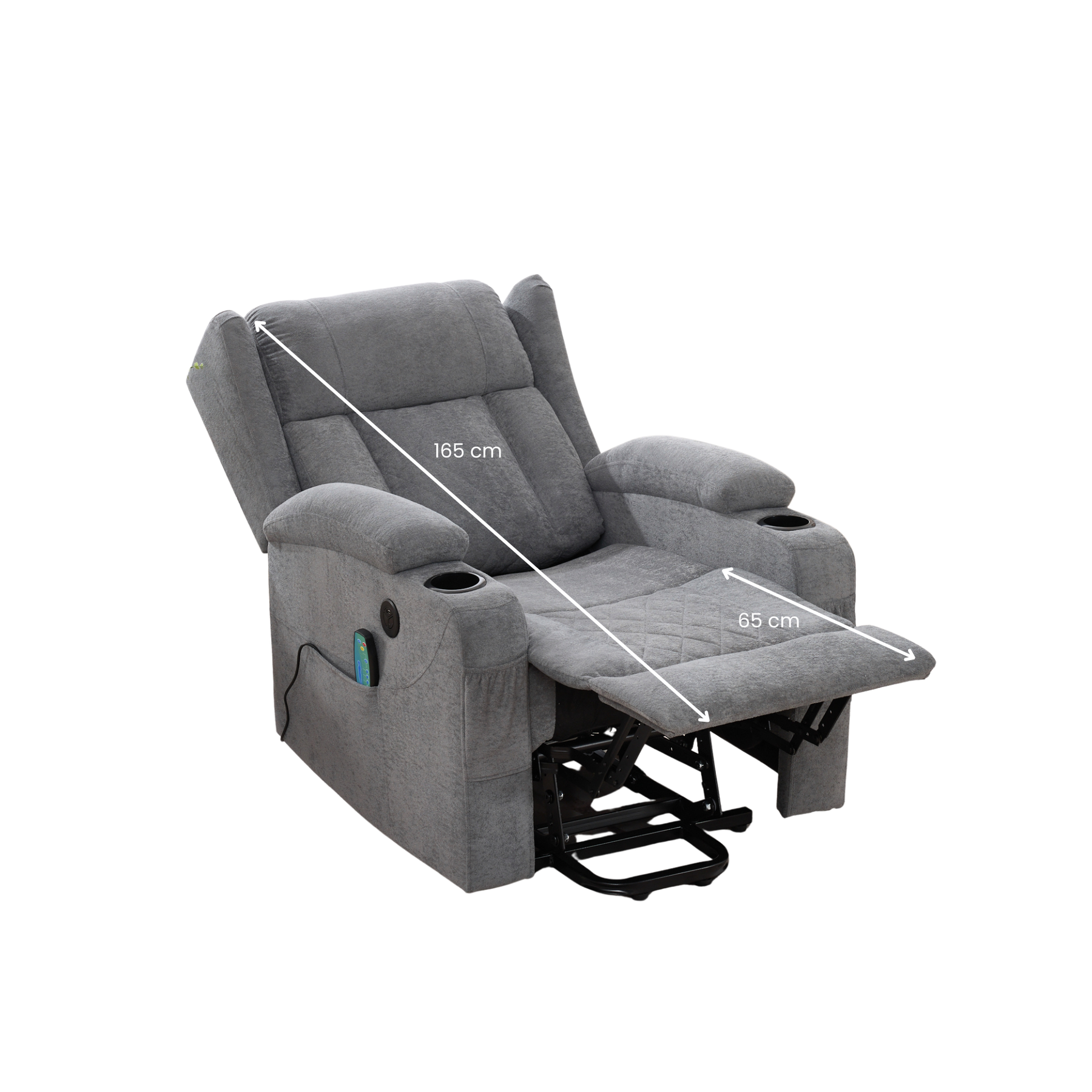 Relax with ease in the Electric Lifting Recliner Armchair – Dark Grey. Designed for comfort and support, it features electric lift assist, built-in massage and heating, and convenient extras like cup holders and storage pockets. Ideal for everyday living, especially where mobility support is needed.