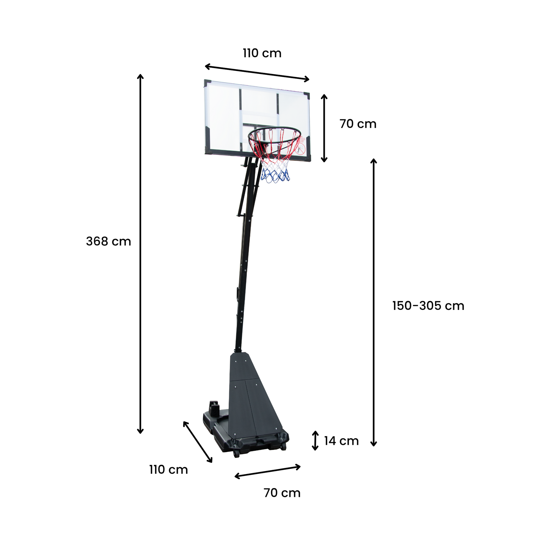 - Rim Height: Adjustable from 150 cm – 305 cm
