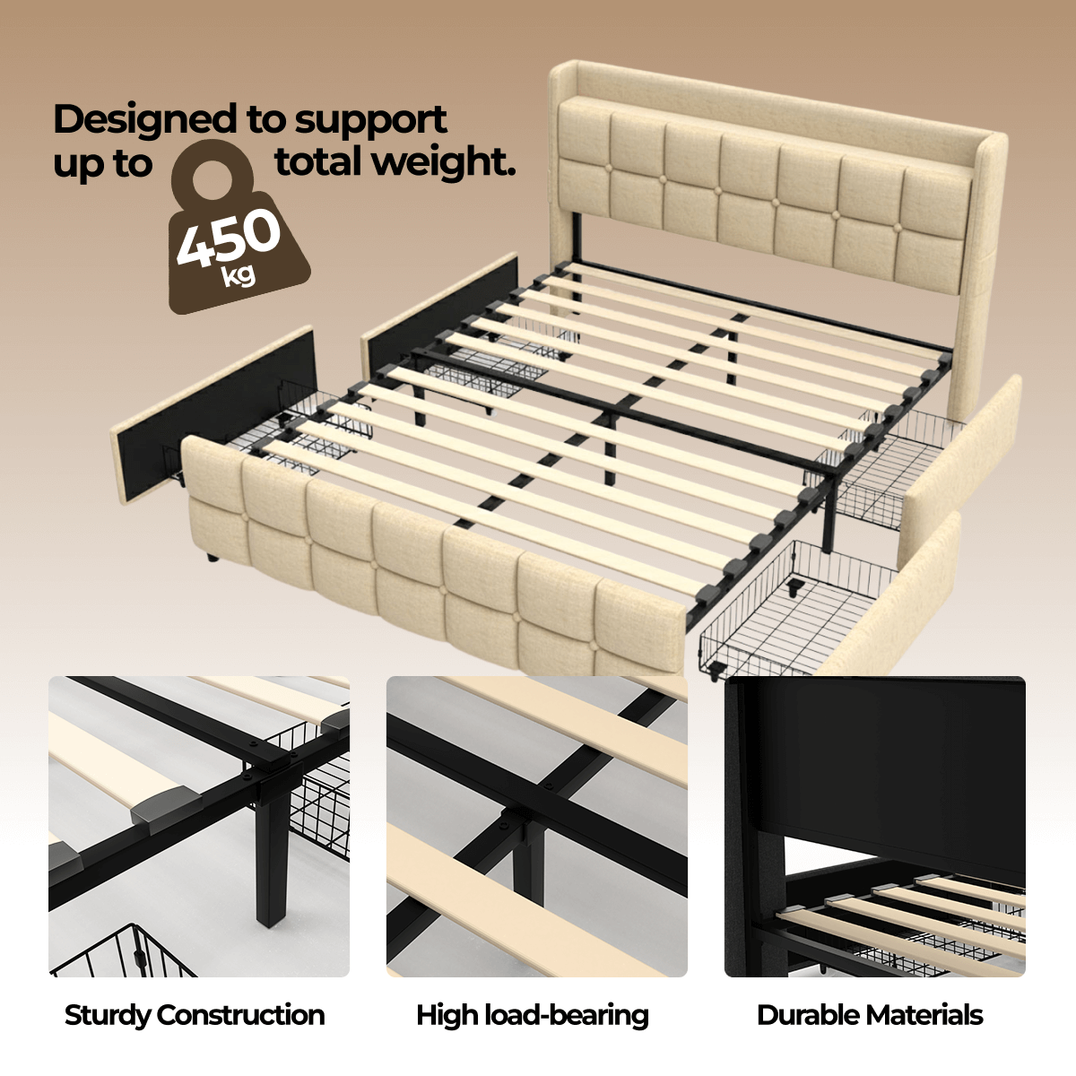 - 1 x Phoenix Upholstered Fabric Bed with Headboard + 4 x Storage Drawers (mattress not included)