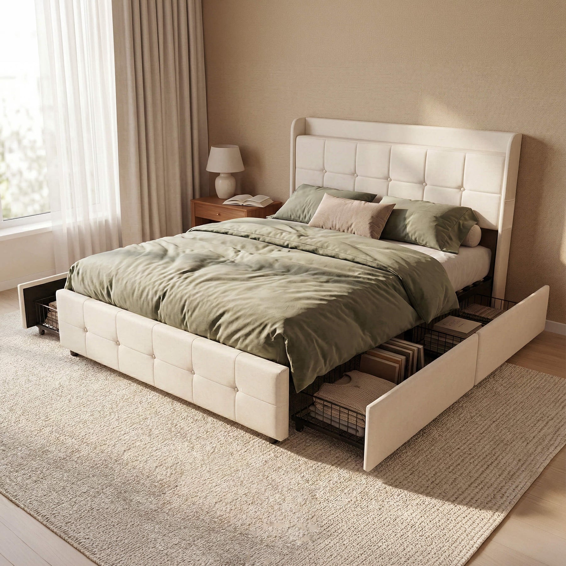 Four spacious drawers: Store bedding, clothing, or personal items neatly under the bed.