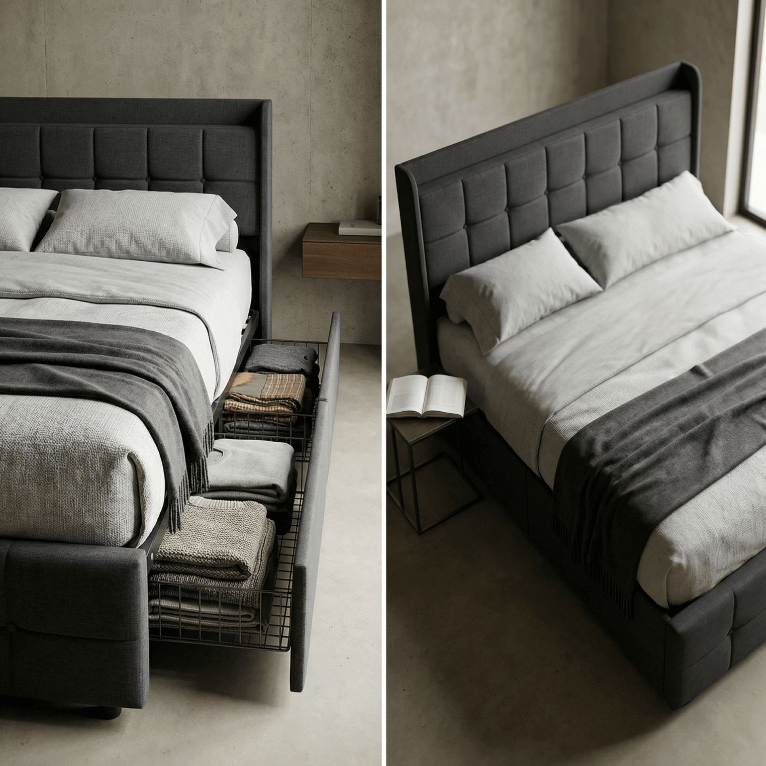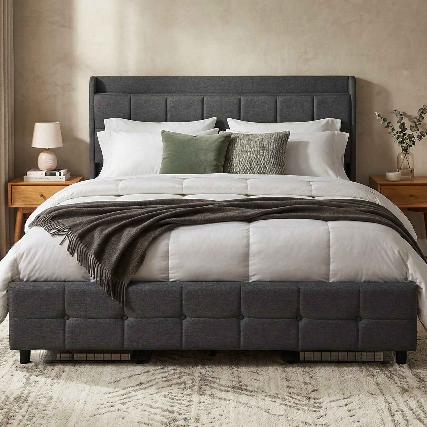 Smart headboard storage: Two built-in pockets to keep your devices, books, and essentials within reach.