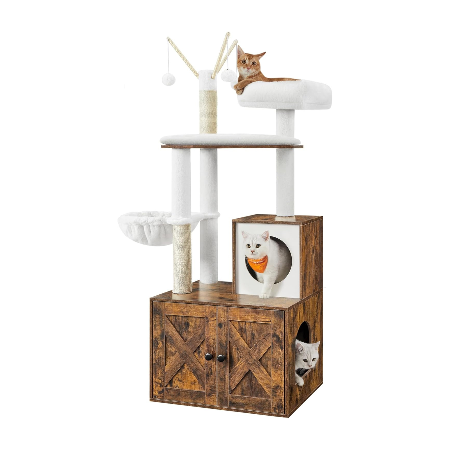 2-in-1 cat furniture- With the combination of scratching post and cat litter box, your cat gets a place to observe, play, relax and perform its emergency needs, but it only takes up 57.5cm x 50 cm area - a real space saver