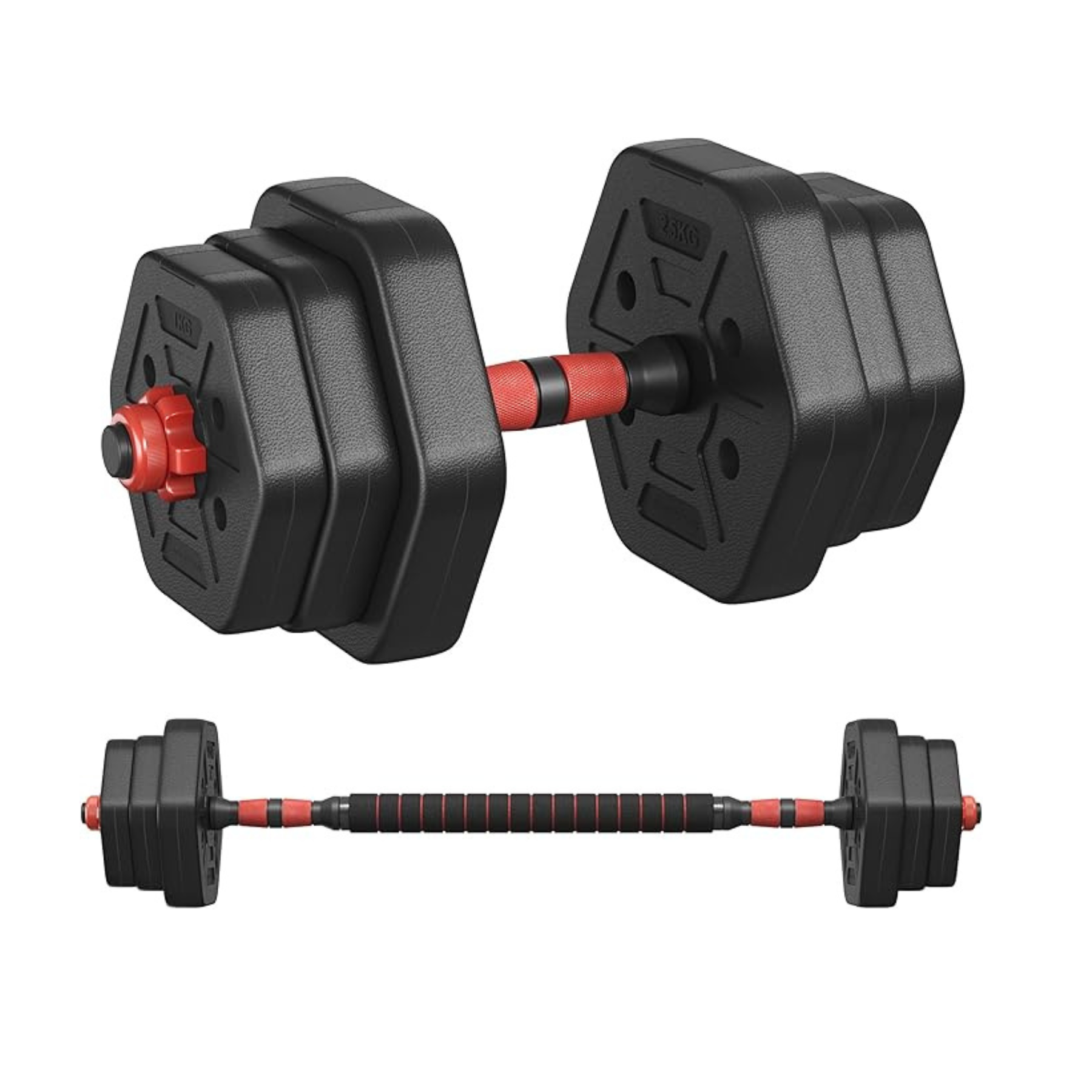 Comfortable, Non-Slip Grip: The dumbbell bars feature a textured surface to help prevent slipping, while the foam-covered barbell connector offers extra comfort and stability during lifts.
