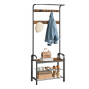 The sturdy and stable top bar of this hall tree allows you to max out the vertical space by hanging scarves, and umbrellas, or adding coat hangers to hang up more clothes. With 9 quality, removable hooks in 2 rows, you can easily change their position to hang items of varying sizes. Crafted with robust, rust-resistant metal, these hooks can stand the test of time.