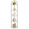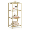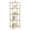 Add a touch of luxury to your living space with this sleek shelf unit, featuring a gold steel frame and clear glass panels that exude elegance and sophistication.