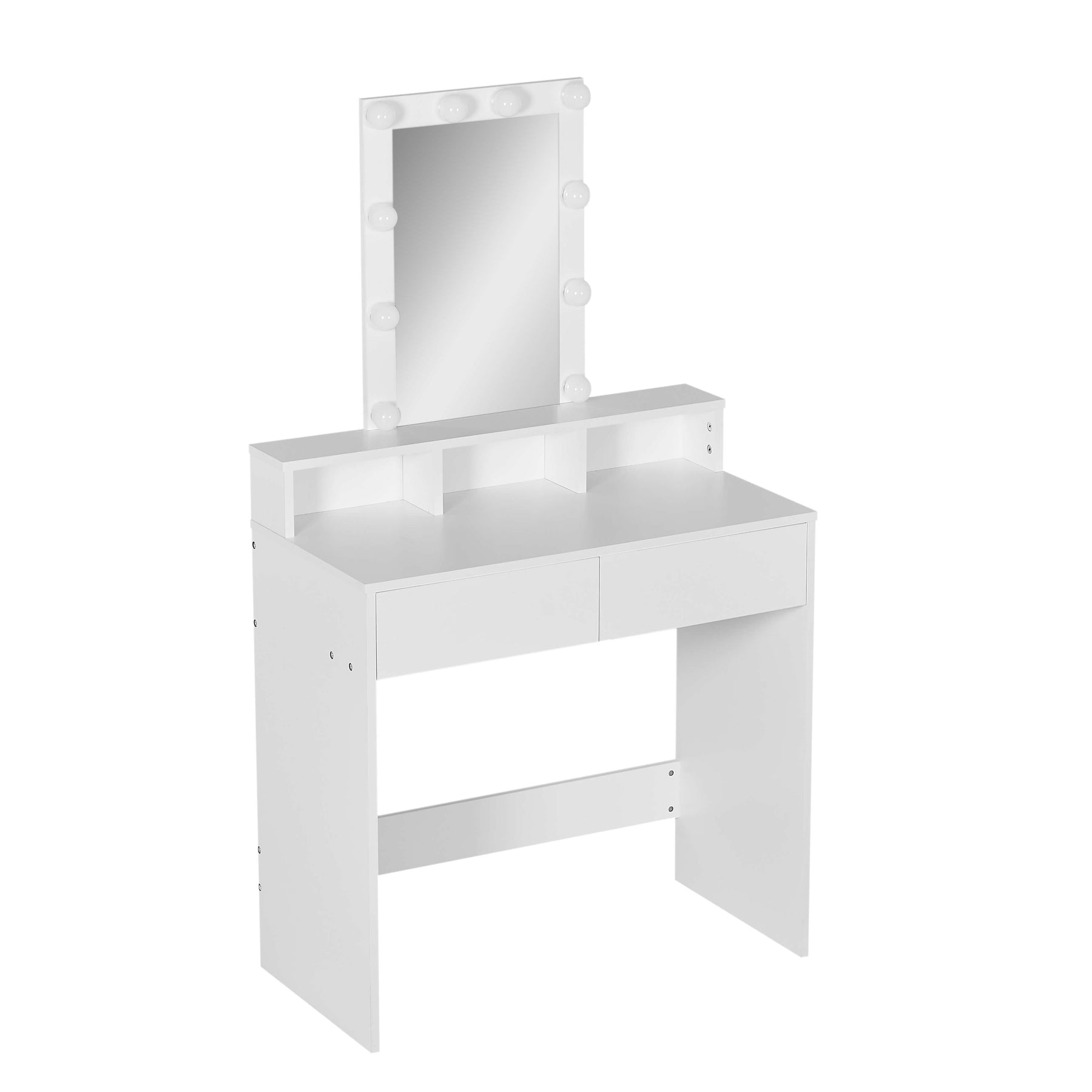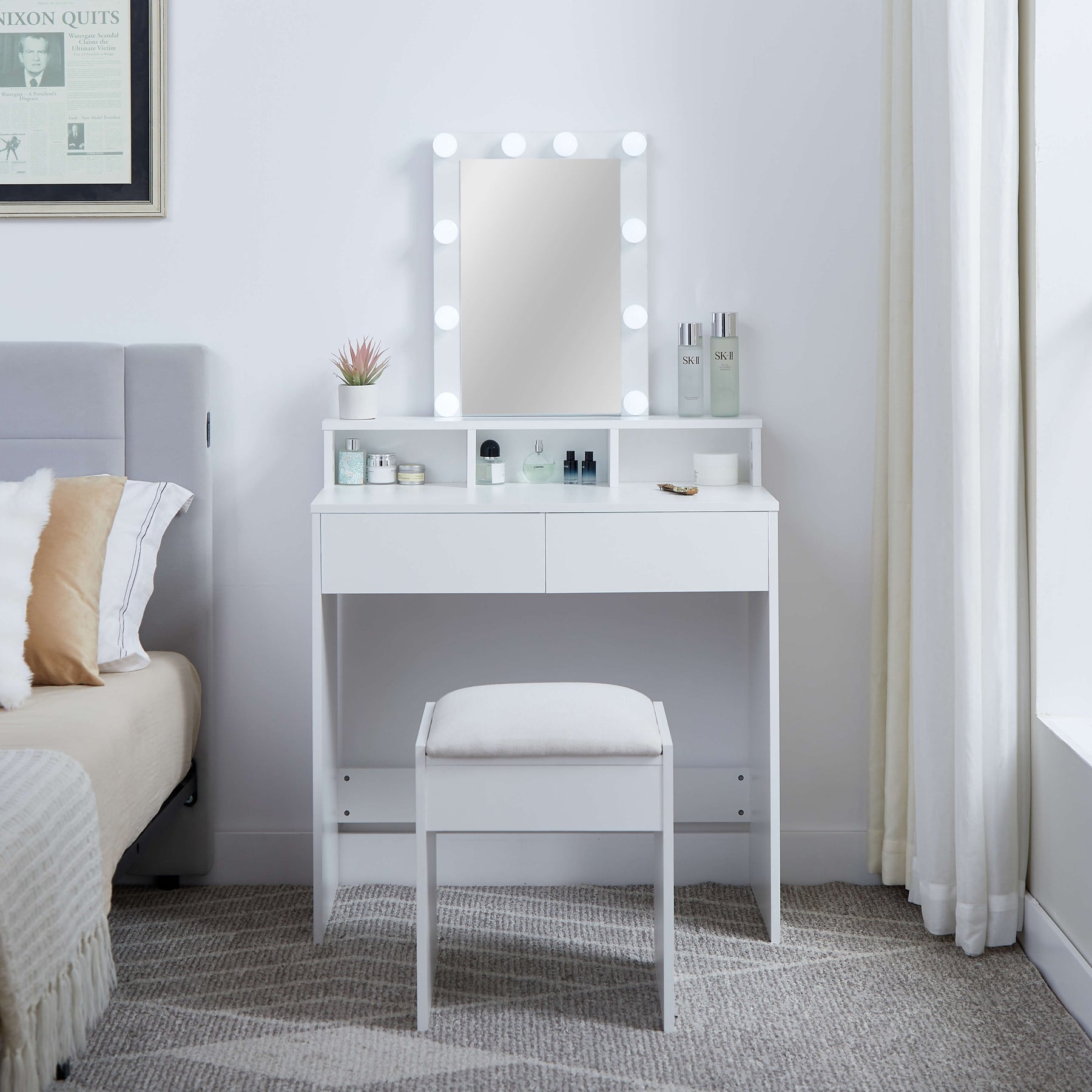 Compact Yet Functional: With two spacious drawers and open upper compartments, this vanity offers convenient storage for your everyday makeup and skincare essentials. Measuring just 80 × 40 cm on the floor, it fits perfectly in small bedrooms or apartments.