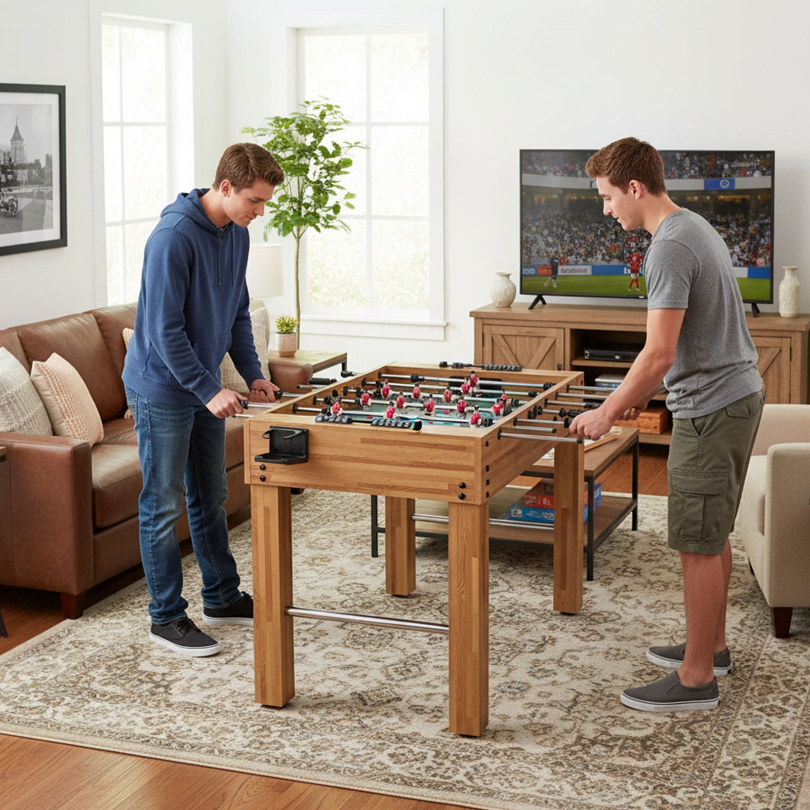 The 4ft Foosball Table is a compact yet full-featured addition to your home. Its wood finish creates a warm, timeless look, while its sturdy build ensures stability even during fast-paced games. Whether it’s a casual match with family or a tournament-style battle with friends, this table adapts to every occasion.