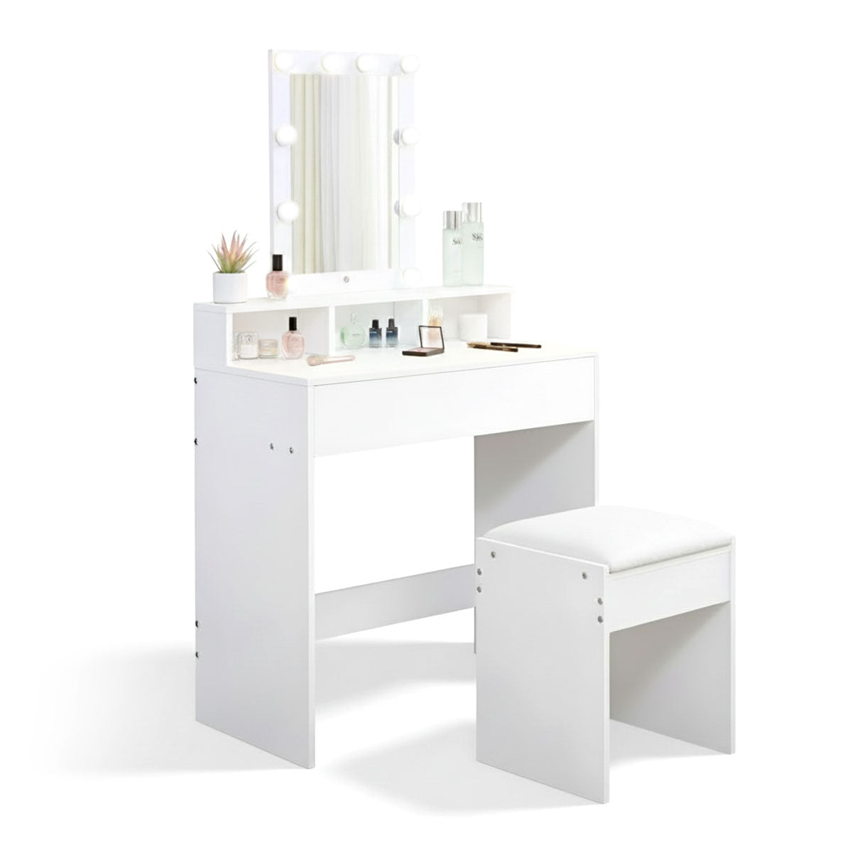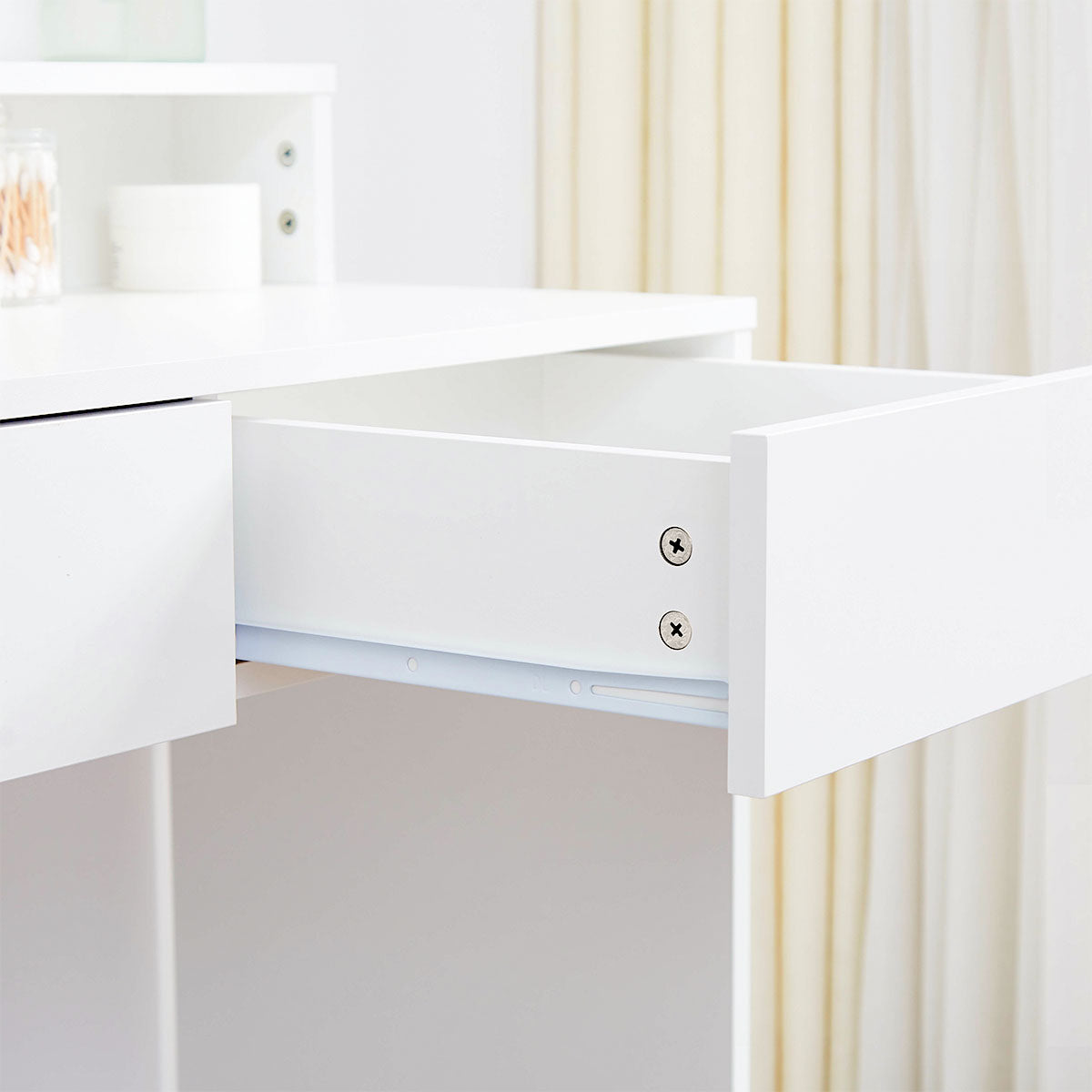 Compact Yet Functional: With two spacious drawers and open upper compartments, this vanity offers convenient storage for your everyday makeup and skincare essentials. Measuring just 80 × 40 cm on the floor, it fits perfectly in small bedrooms or apartments.