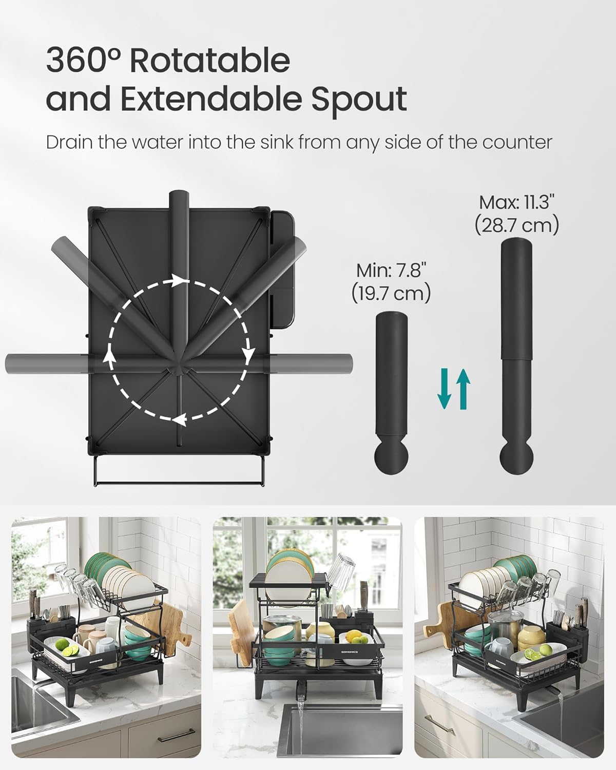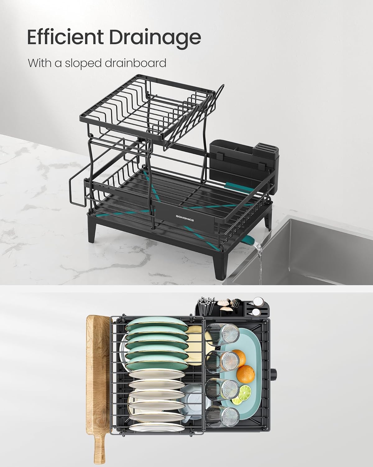 Why You’ll Love It: Clean lines, practical features, and no-fuss assembly make this dish rack a kitchen essential. From plates to utensils, everything dries efficiently — and looks tidy while doing it.