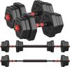 Transform your home workouts with this adaptable 10kg dumbbell and barbell set, designed to suit all fitness levels. Whether you're focusing on arms, shoulders, chest, or legs, this space-saving set lets you train multiple muscle groups with ease. The quick-convert design makes it simple to switch from dumbbells to a barbell, offering a full-body workout without needing bulky gym equipment.