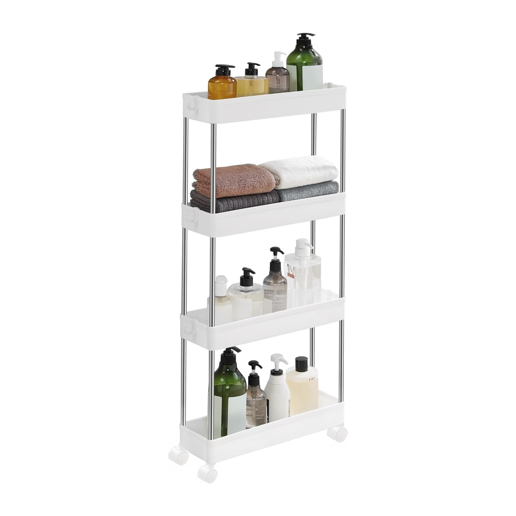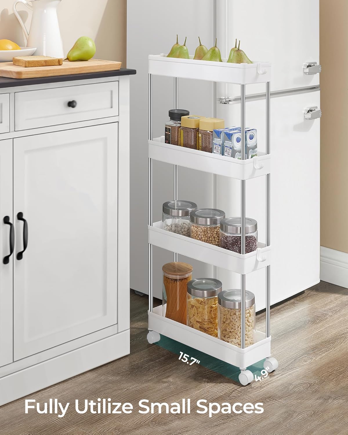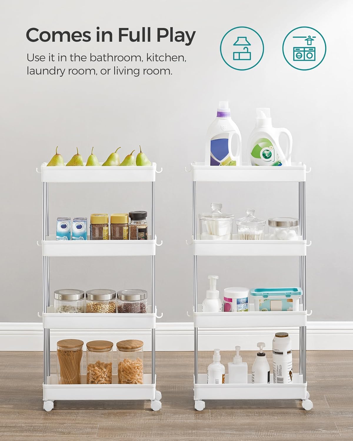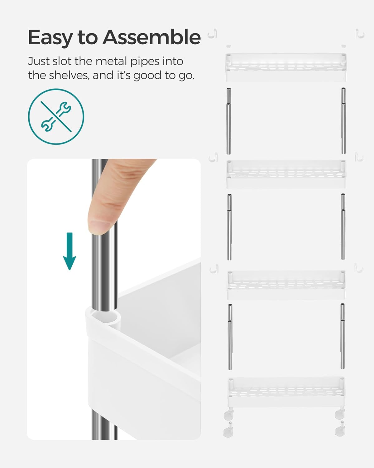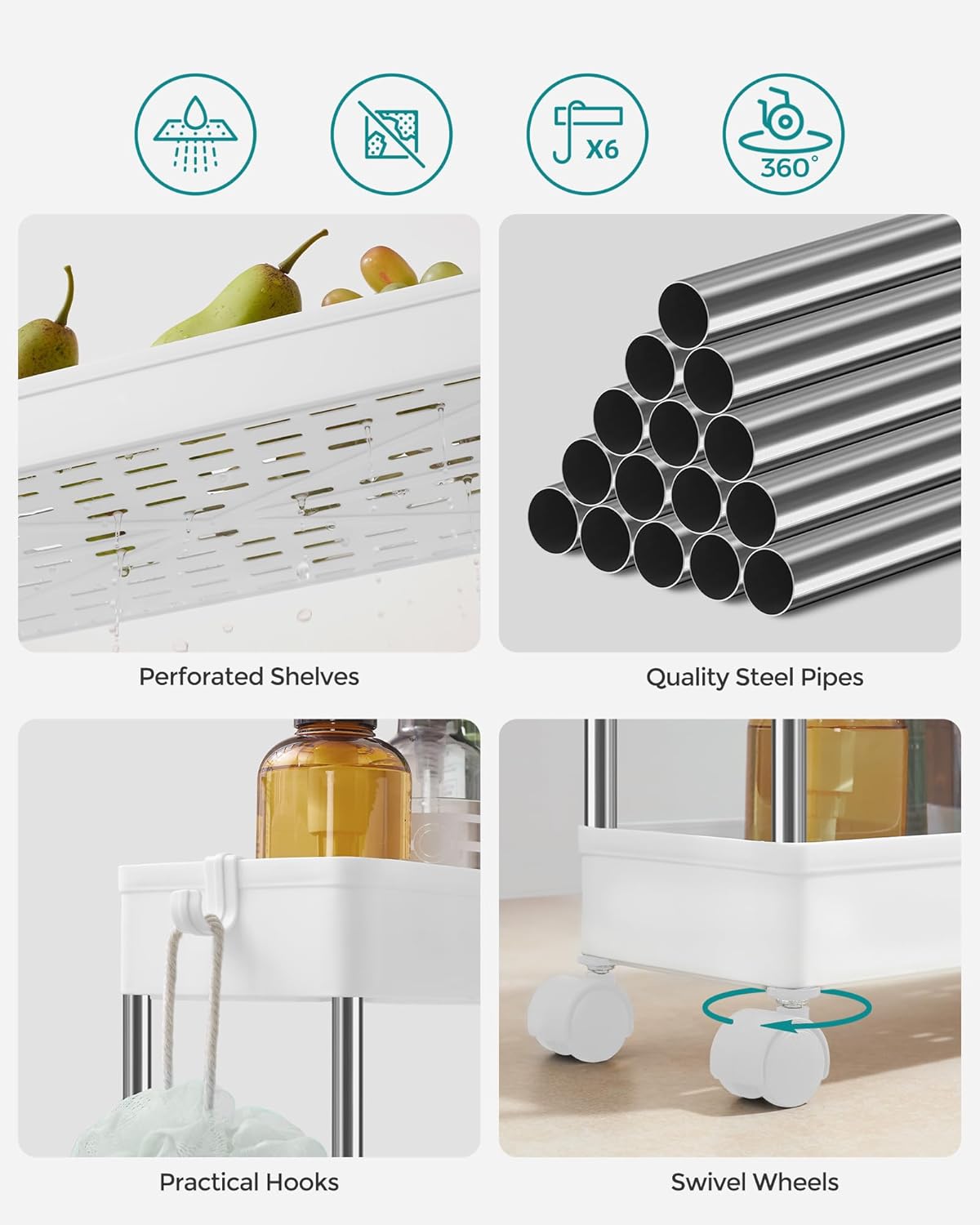 [Easy to Move with Castors] Thanks to the 4 smooth-rolling swivel castors, you can effortlessly move the trolley wherever you require it, utilizing corner spaces for organizing spice bottles or bathroom supplies.
