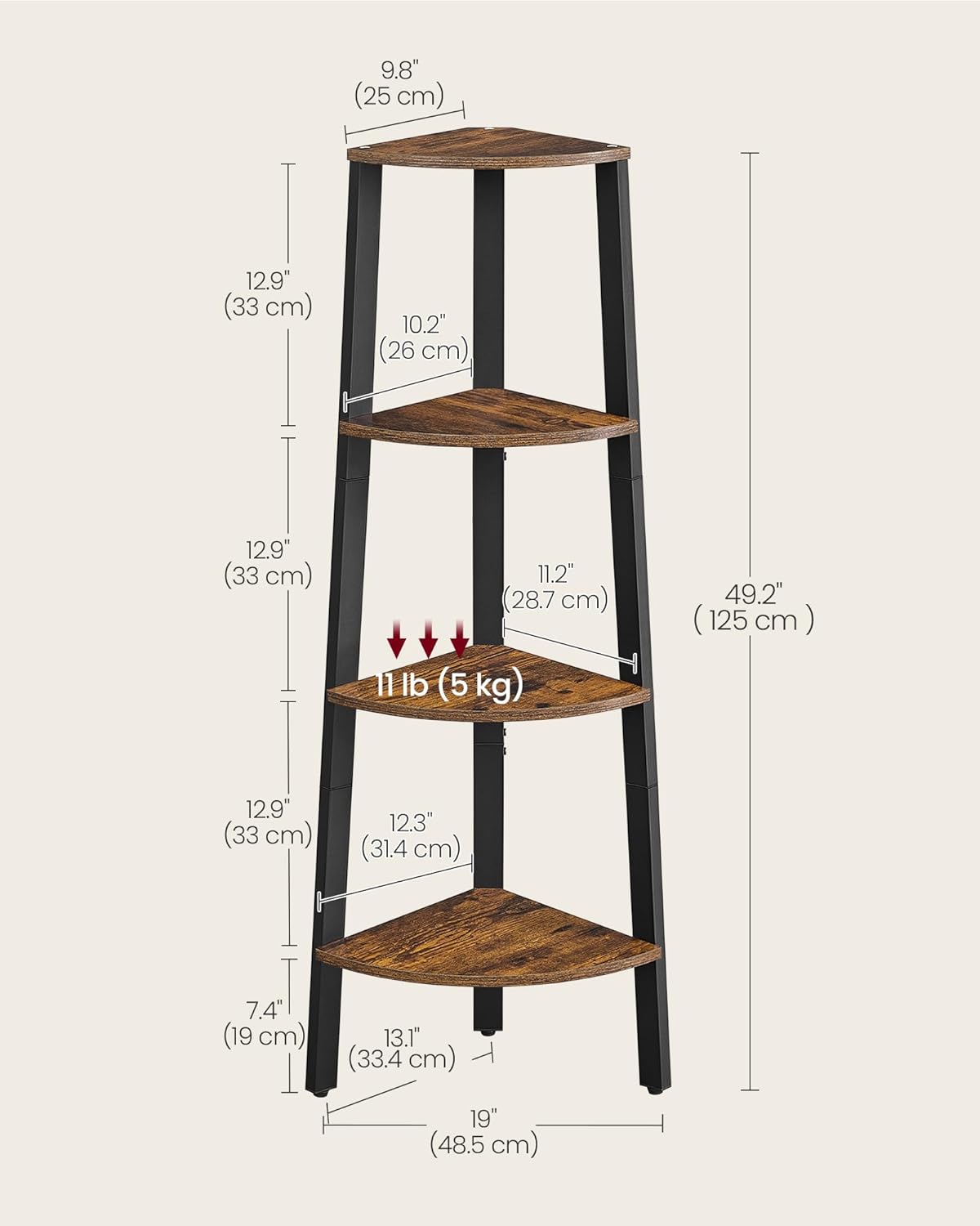 Turn unused corners into stylish storage with the 4-Tier Corner Shelf Stand – a compact, industrial-inspired display unit that makes the most of small spaces. With rustic brown shelves, a black metal frame, and stable design, it’s perfect for showcasing plants, décor, books, or photos anywhere in your home.