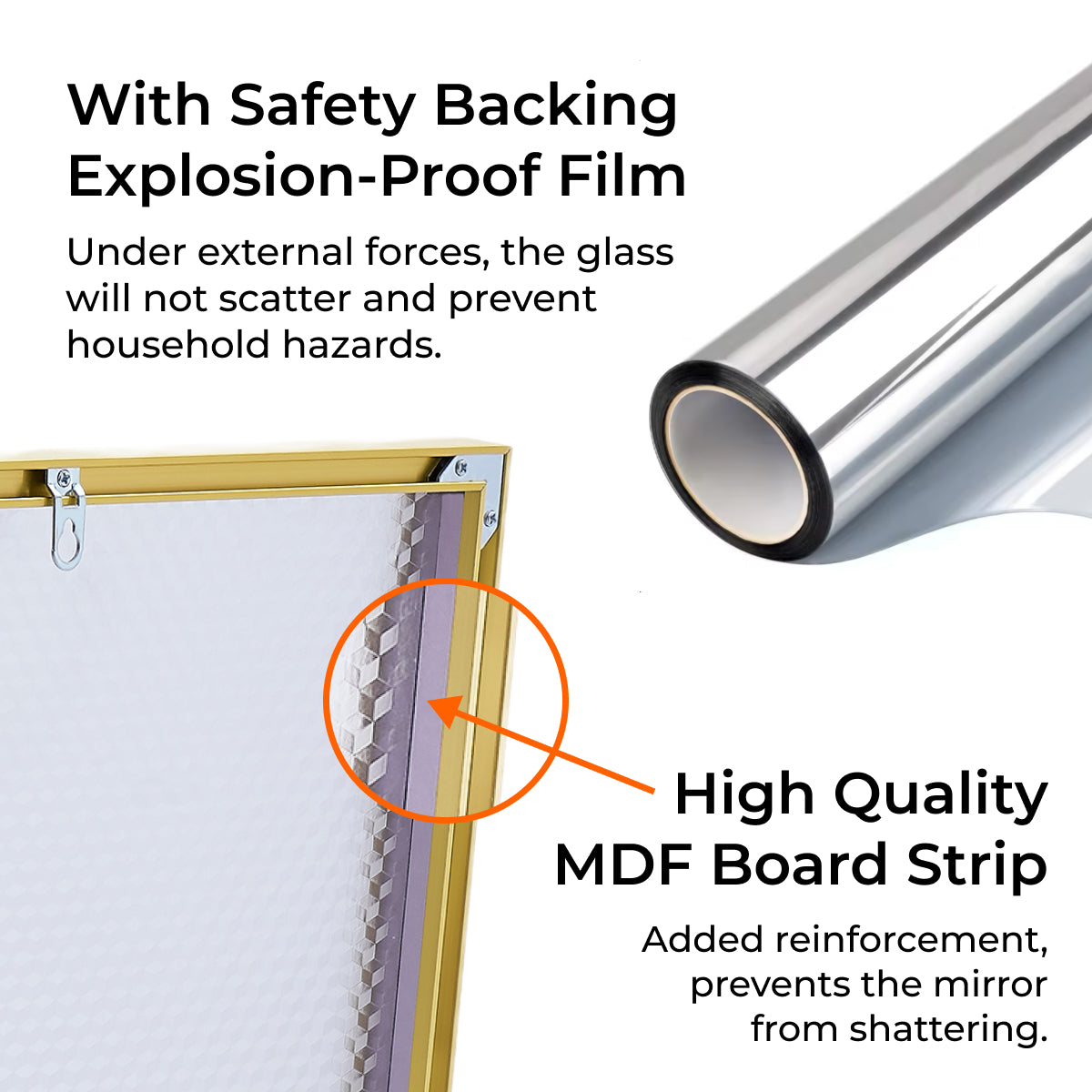 • Added Reinforcement with MDF Strip: A high-quality MDF board strip is built into the backing for extra strength. This discreet feature helps prevent shattering and adds a layer of stability that gives you peace of mind, especially in high-traffic areas.