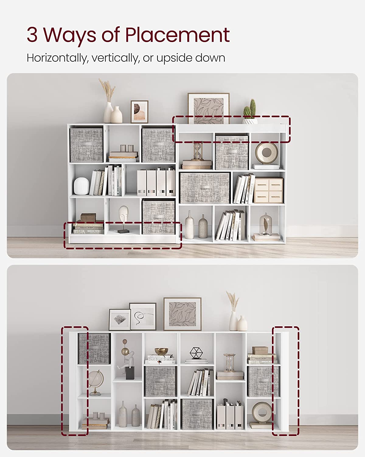 - 8-compartment design: Includes 6 open cubes and 2 larger sections with backs for flexible storage