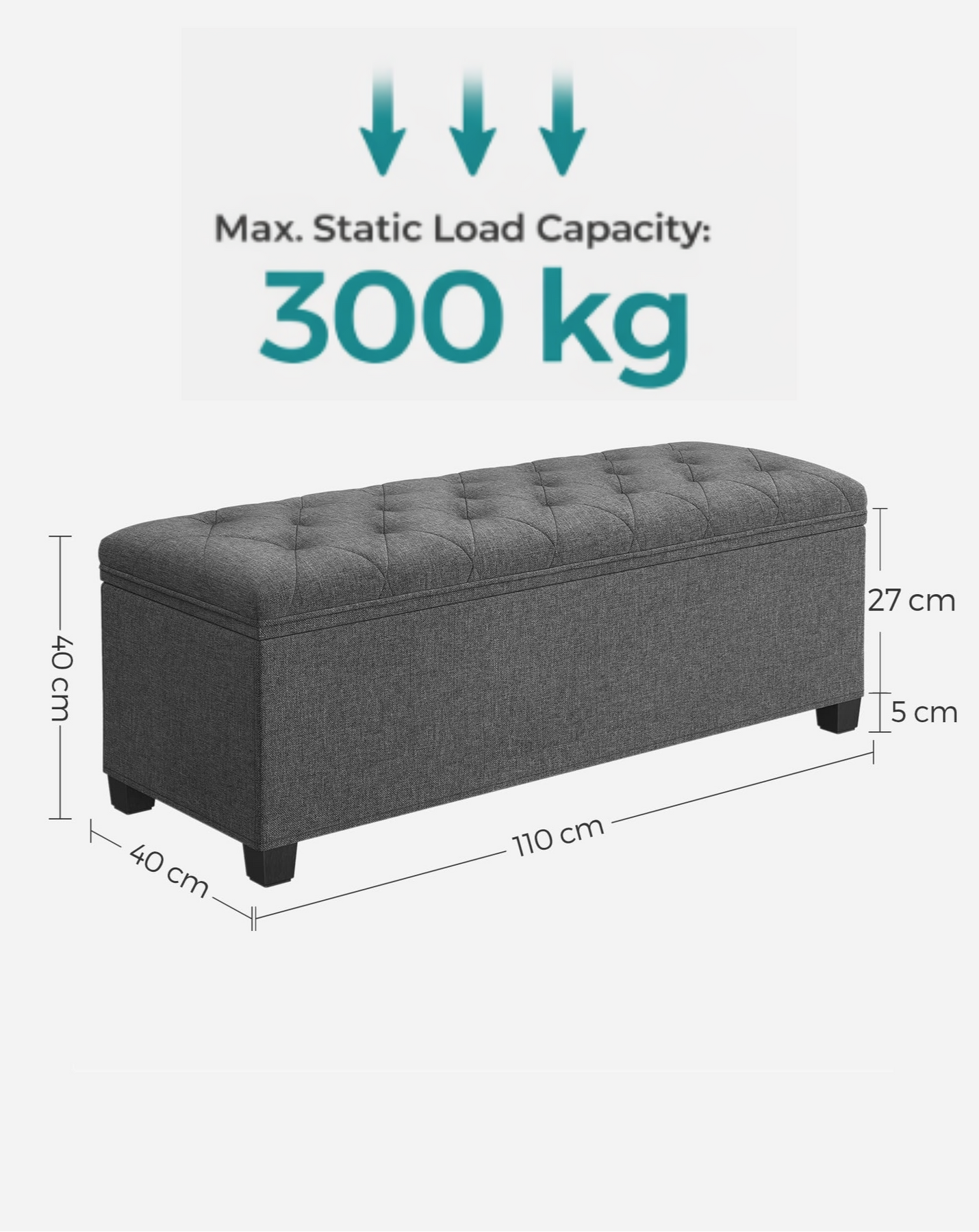 [Sit in Comfort] With its breathable linen-look fabric and 2-inch thick high-density foam padding, this storage bench provides maximum comfort when you sit on top.