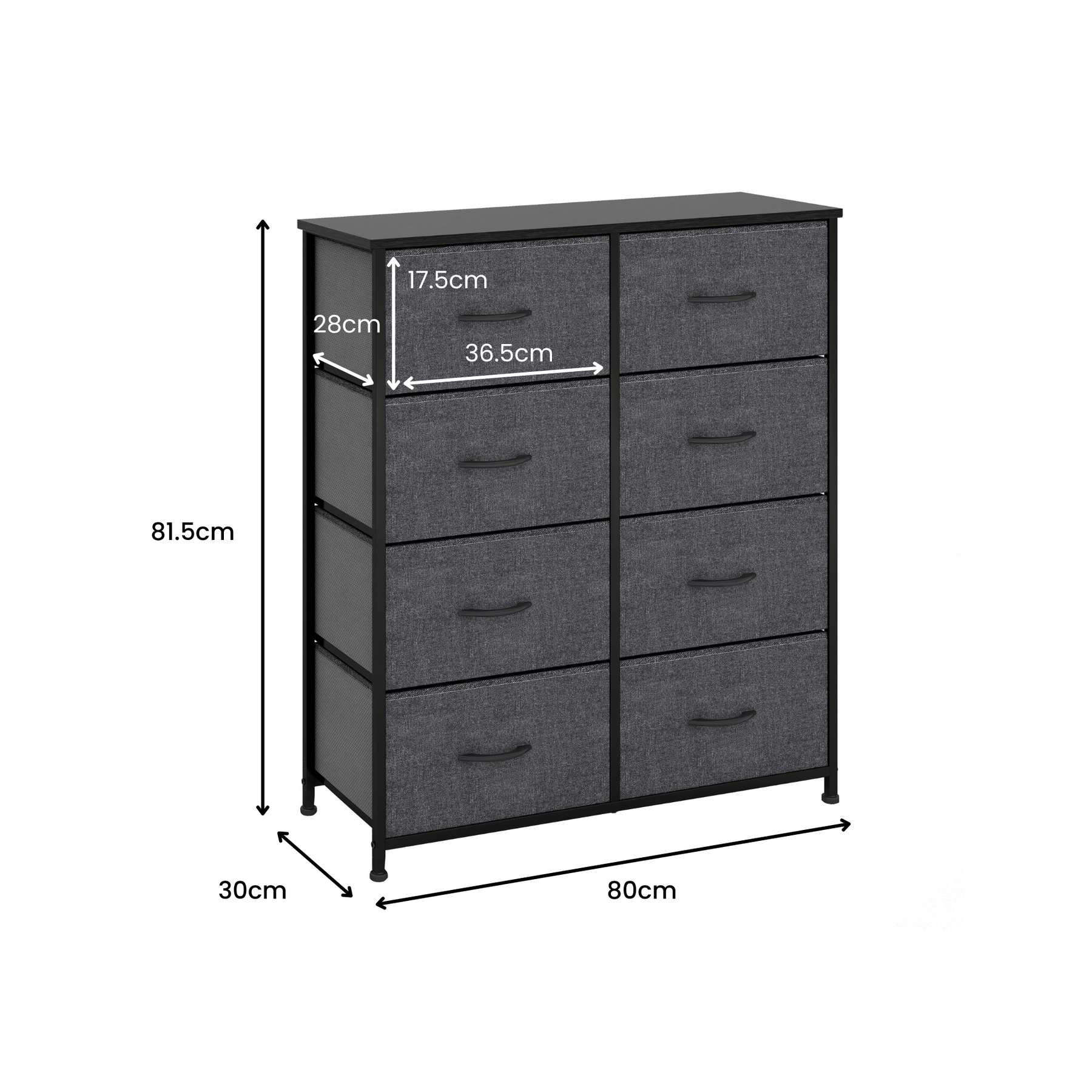 Maximised Storage Space: With eight spacious drawers, this chest effortlessly accommodates all your essentials from clothing to bedding, ensuring your home remains a sanctuary of tidiness.