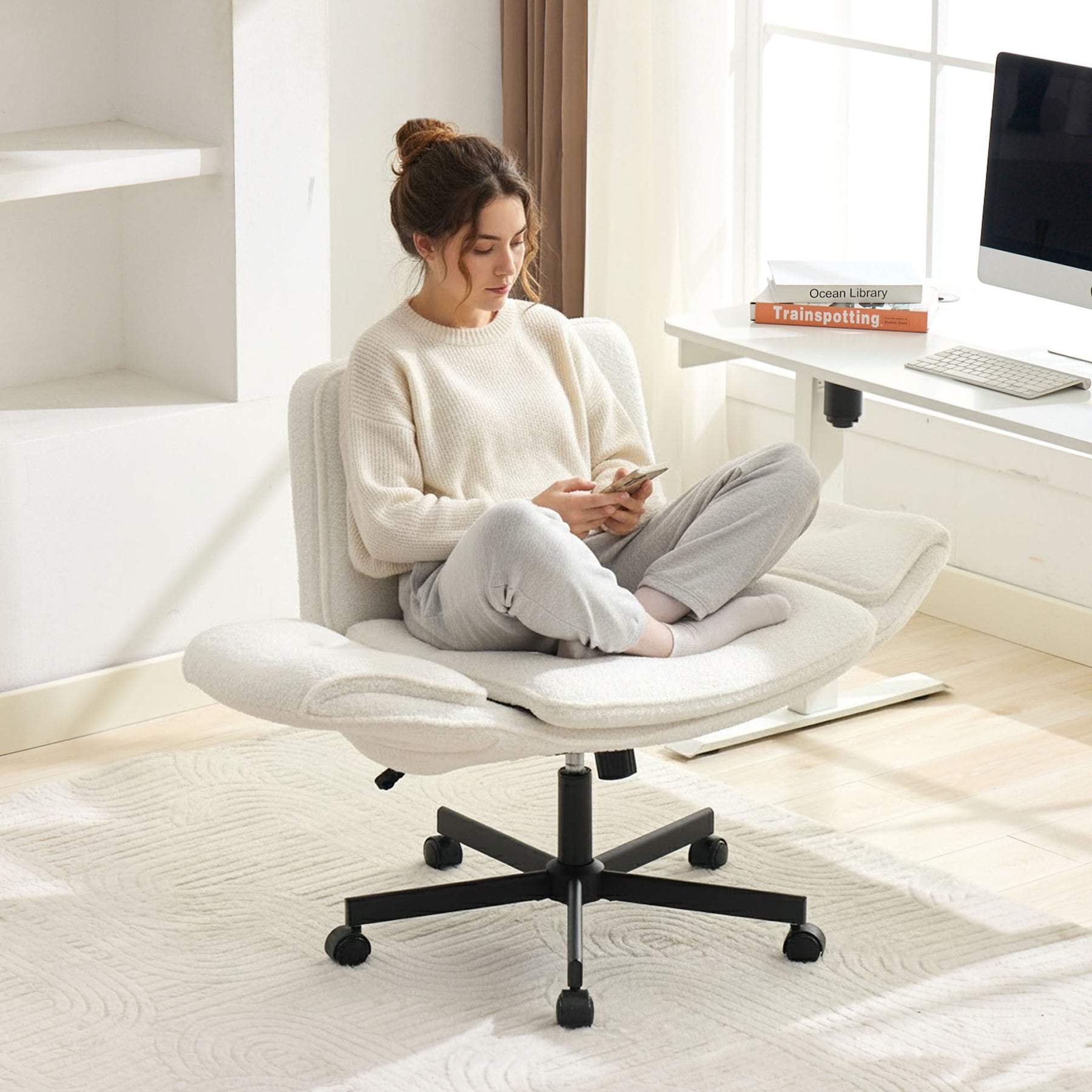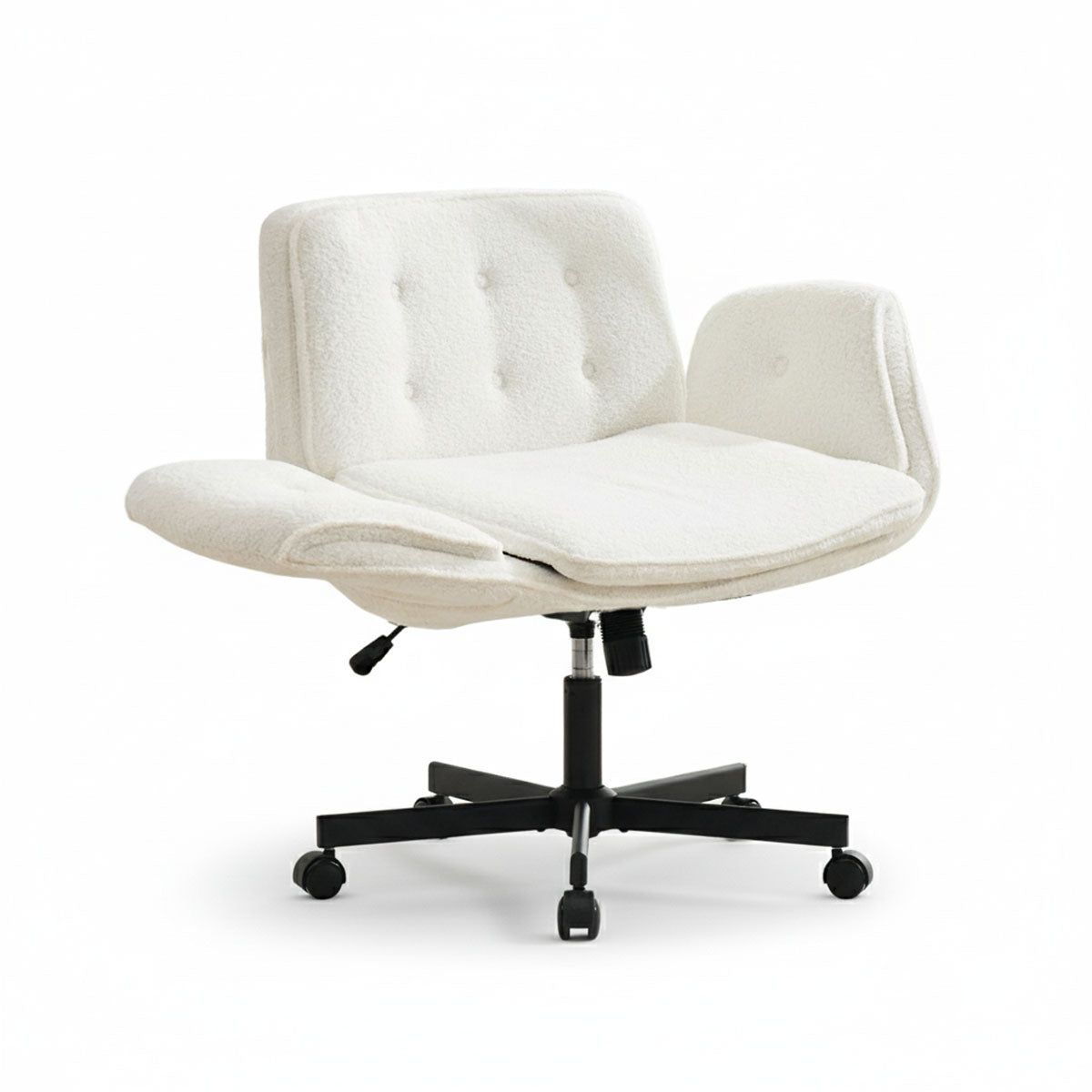 Sit your way in comfort with the Cross-Legged Swivel Vanity Chair – ideal for home offices, vanity tables, or creative spaces. With plush boucle fabric, foldable arms, and a seat wide enough for cross-legged sitting, this chair is made for modern comfort and flexibility.