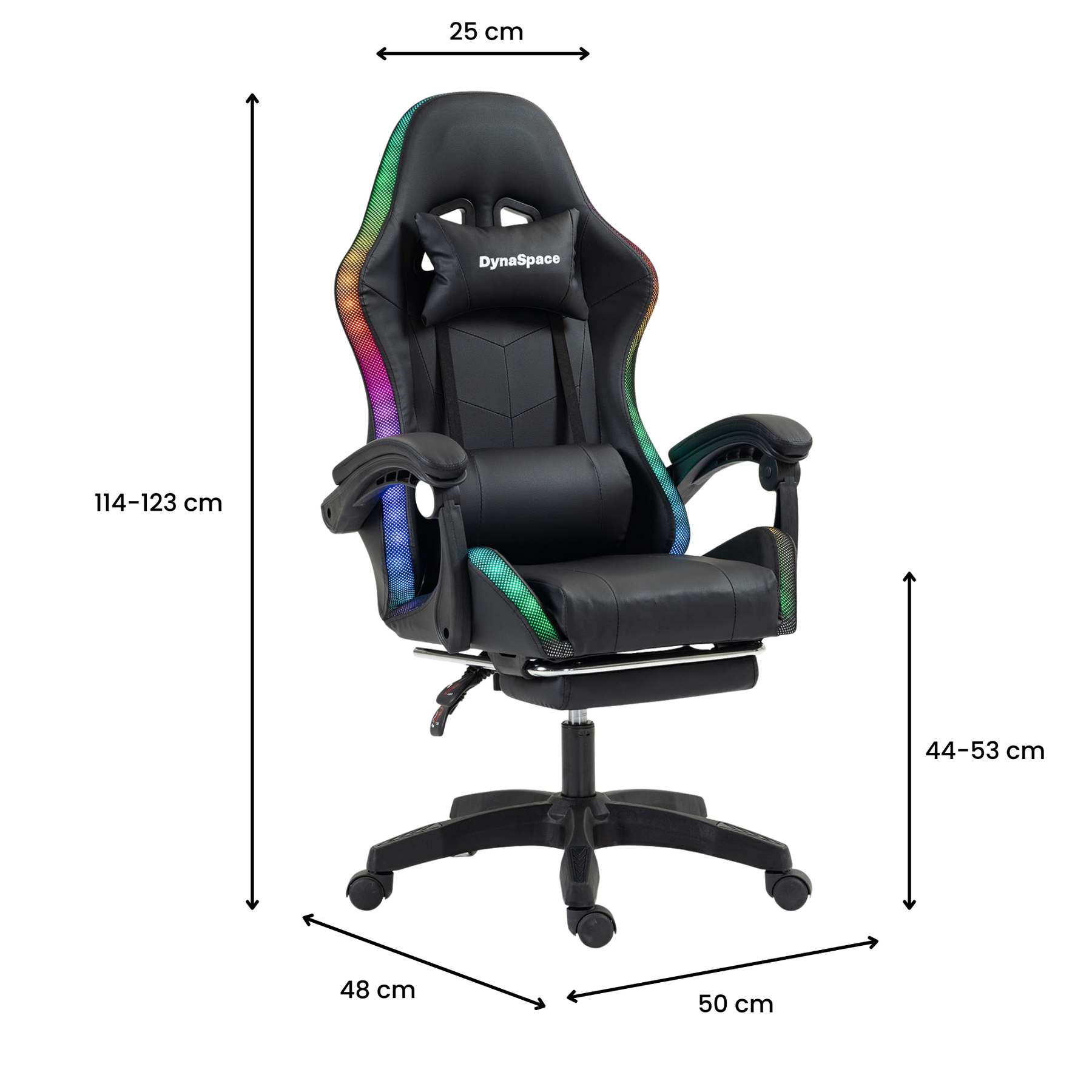 - Retractable footrest & light strip: Relax with ambient lighting and extendable leg support.