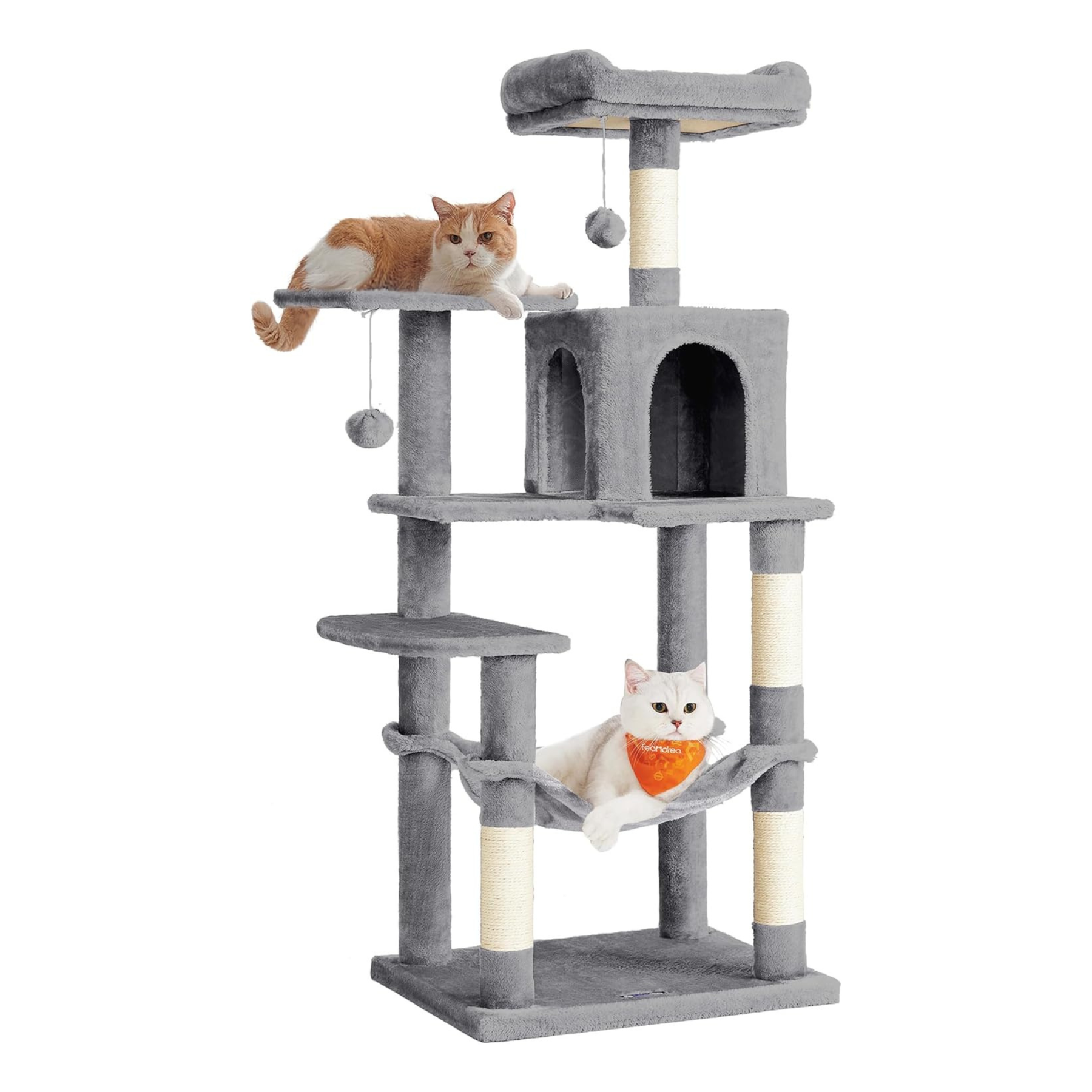 Cat Tree 143cm For Indoor Cats with Scratching Posts and Perches - Light Grey