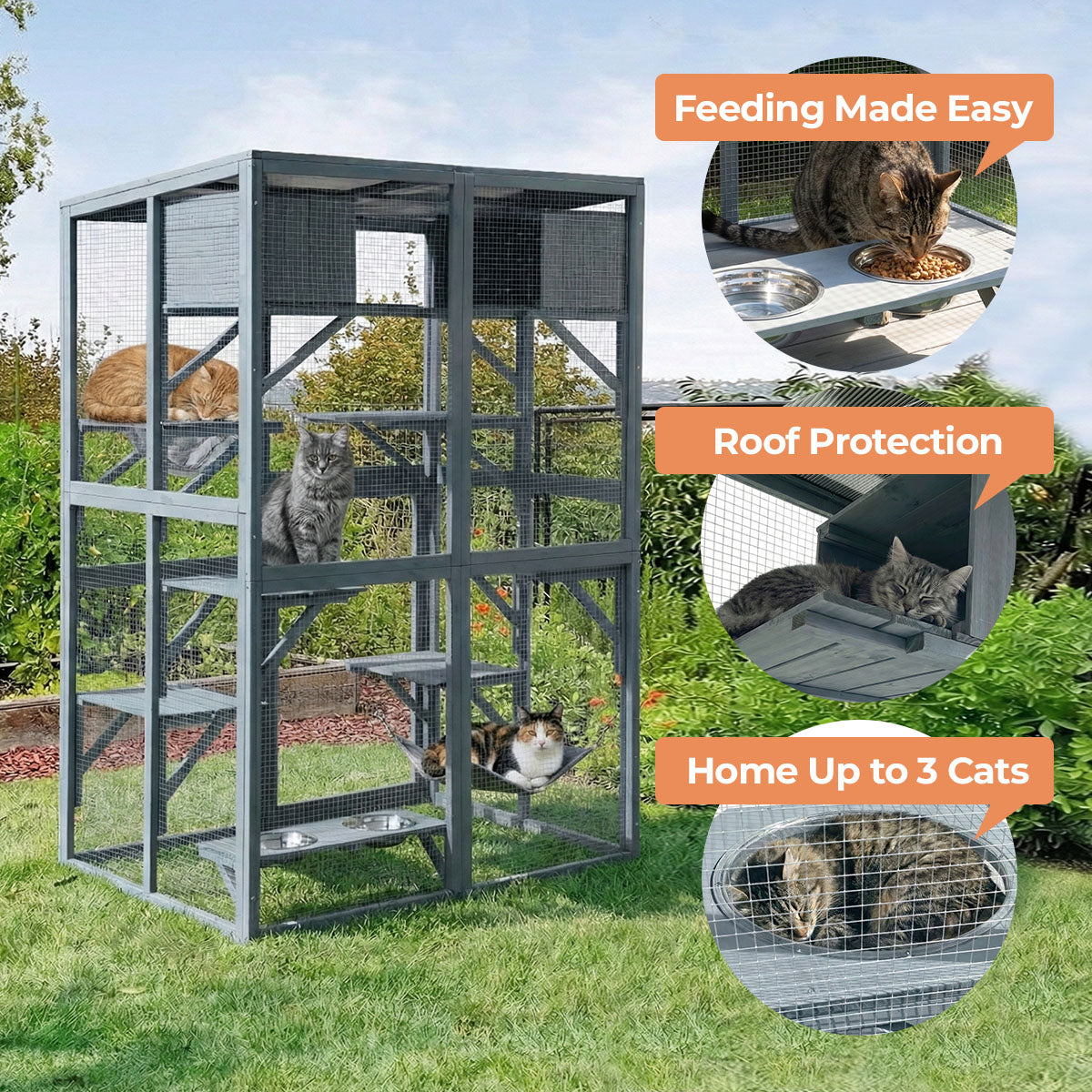The Luna Cat House offers your cats the freedom to enjoy the outdoors safely. Its open mesh design lets in sunlight and fresh air, keeping your pets comfortable and relaxed while preventing escape or danger.