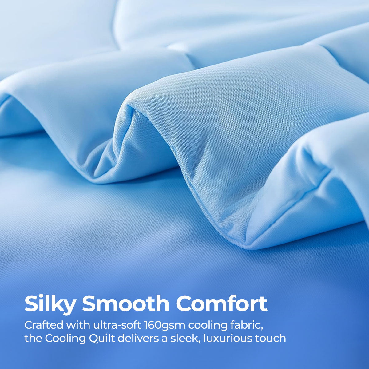 Advanced Cooling Fabric for Instant Relief: Made with 160gsm cooling fabric (90% nylon, 10% spandex), this quilt draws heat away from your body, creating a noticeably cooler sleeping surface. Its smooth, soft-touch finish not only feels luxurious but also helps regulate temperature, making it ideal for night sweats and hot sleepers.