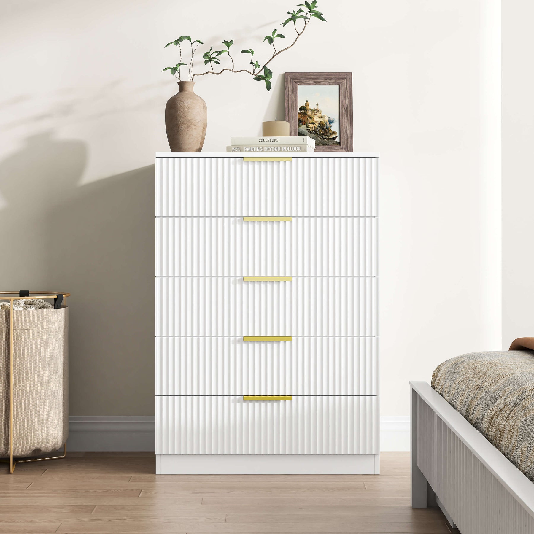 Five smooth-glide drawers: Ideal for clothing, linens, or everyday essentials.