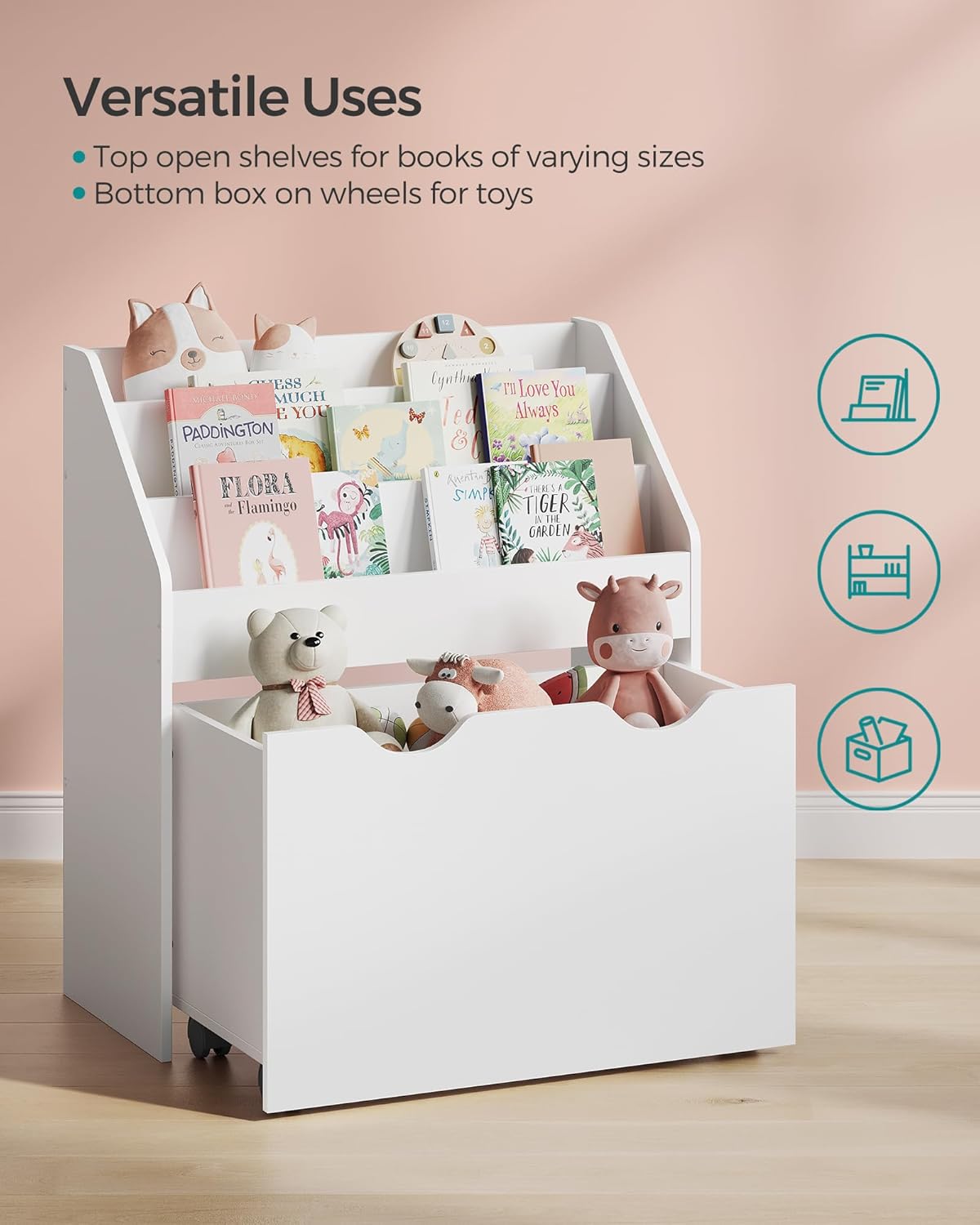 • 1 × Kids’ Storage Bookcase – 3 Shelves with Rolling Toy Box