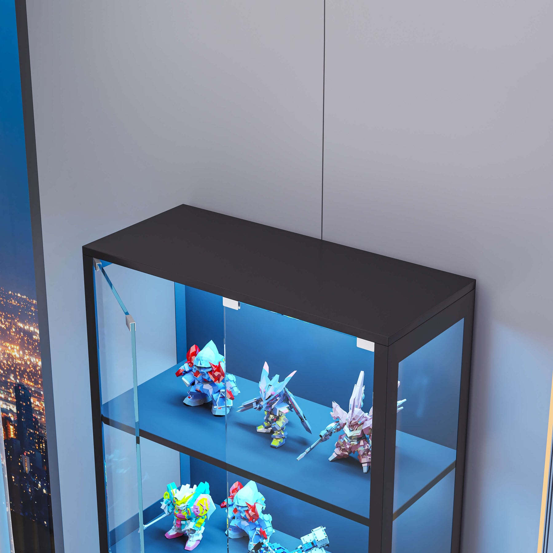 - 1 × Display Cabinet with Glass Doors – Black