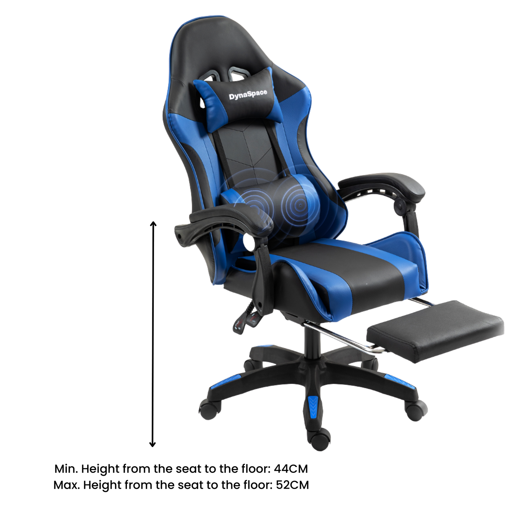 Designed for gamers and work-from-home pros alike, this sleek Gaming Chair transforms your setup. With ergonomic foam padding and a contoured shape for optimal posture alignment, the high back provides luxurious cushioning, while the retractable footrest lets you kick back and relax between matches or tasks. Easily adjust the seat height for a personalised fit, and enjoy the support of head and lumbar cushions with the reclining back. The 360-degree swivel and smooth-rolling wheels ensure effortless comfort and style for gaming or work.