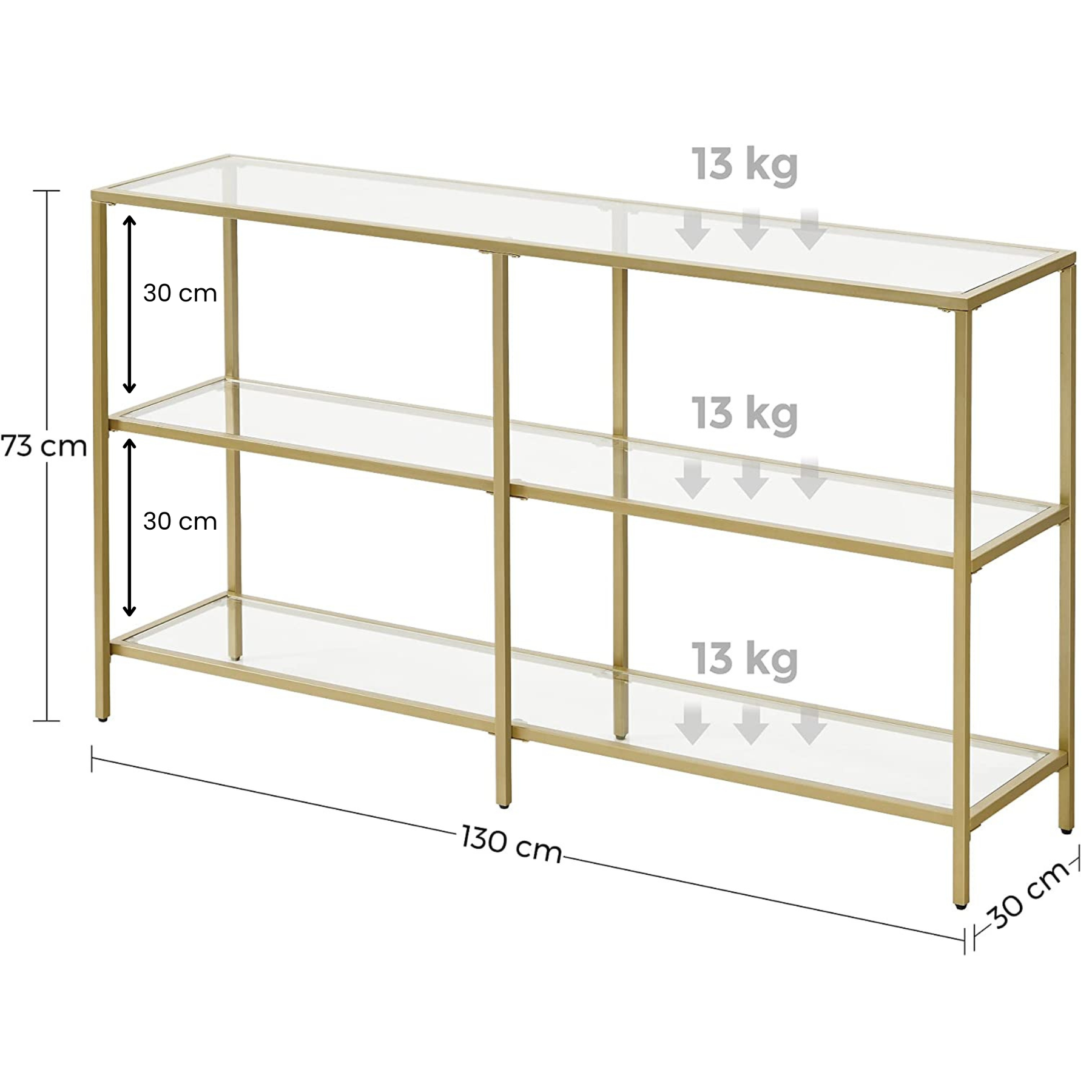 No Need to Worry: You can now proudly display your prized collections, and need not be concerned about flimsy panels or a weak structure. Made with 6mm tempered glass and a sturdy steel frame, this console table will put your mind at ease.