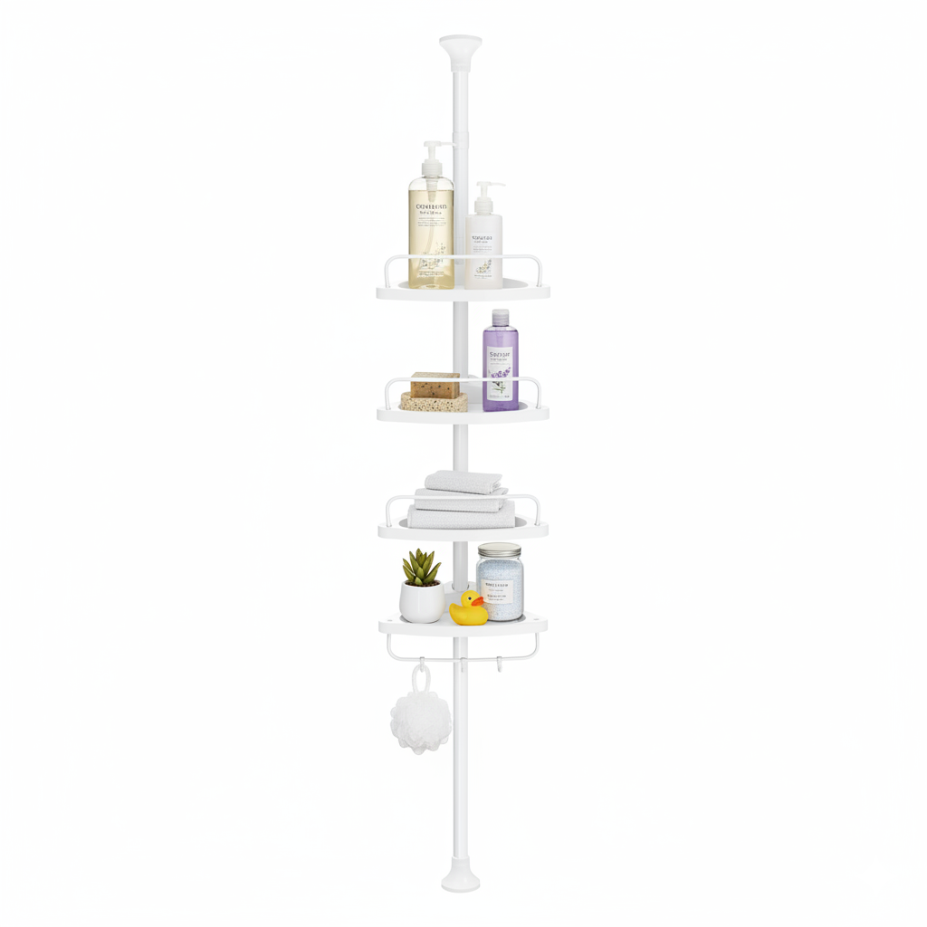 Good stability with the strong spring tube on the top and the caps on the two sides, it is stable and will not collapse easily after being assembled. This adjustable shower shelf not only can add the storage space but also become an attractive accent for your bathroom, don't miss it.