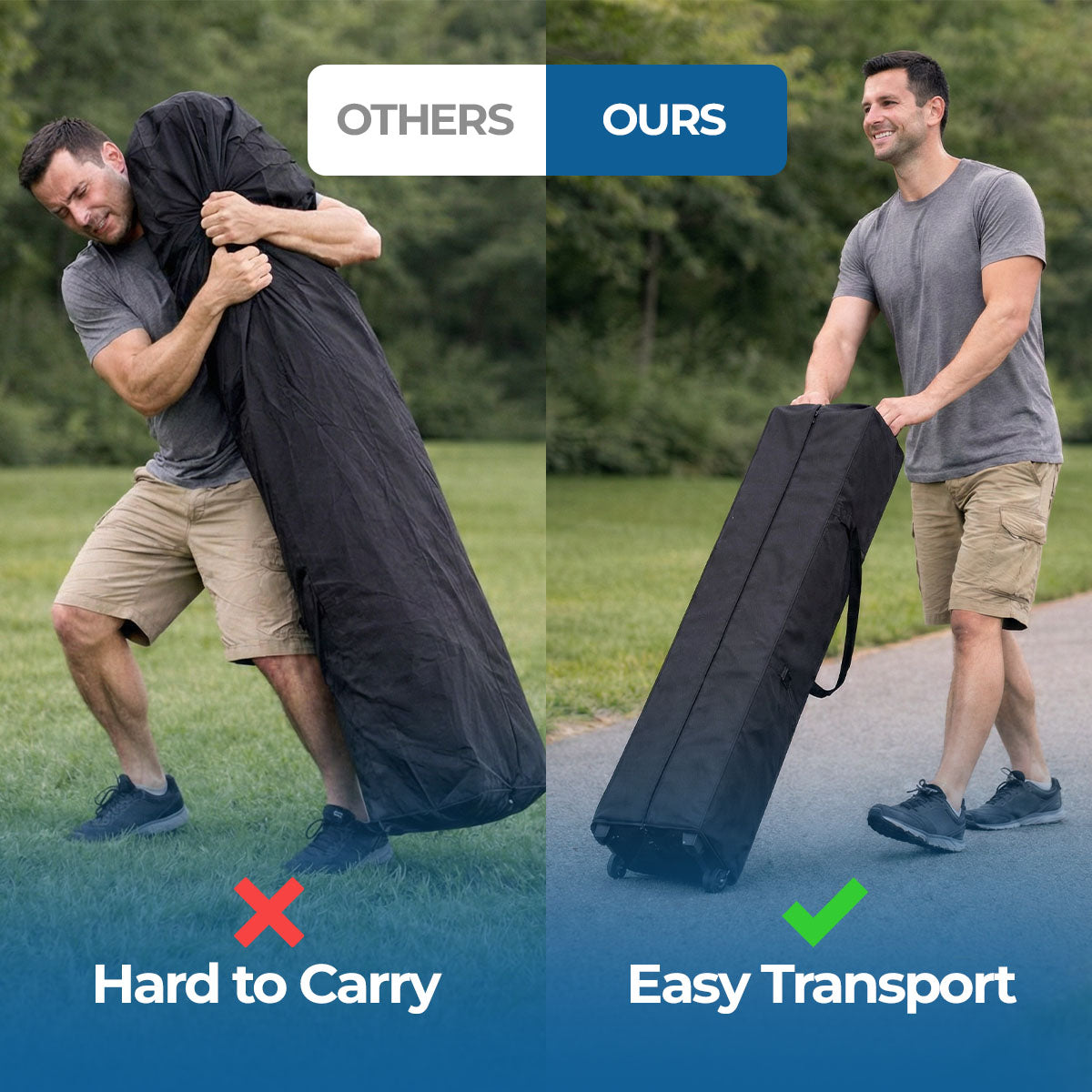 Whether you're running a double-stall market setup, hosting an event, or needing extra outdoor shelter, this 3m x 6m pop-up gazebo delivers generous space and reliable coverage. The tough iron frame and premium canopy are built to handle New Zealand conditions — and everything packs neatly into the wheeled bag for easy transport and storage.