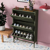 - Triple Drop-Down Compartments: Individually accessible, pull-forward doors for easy shoe access and organization.