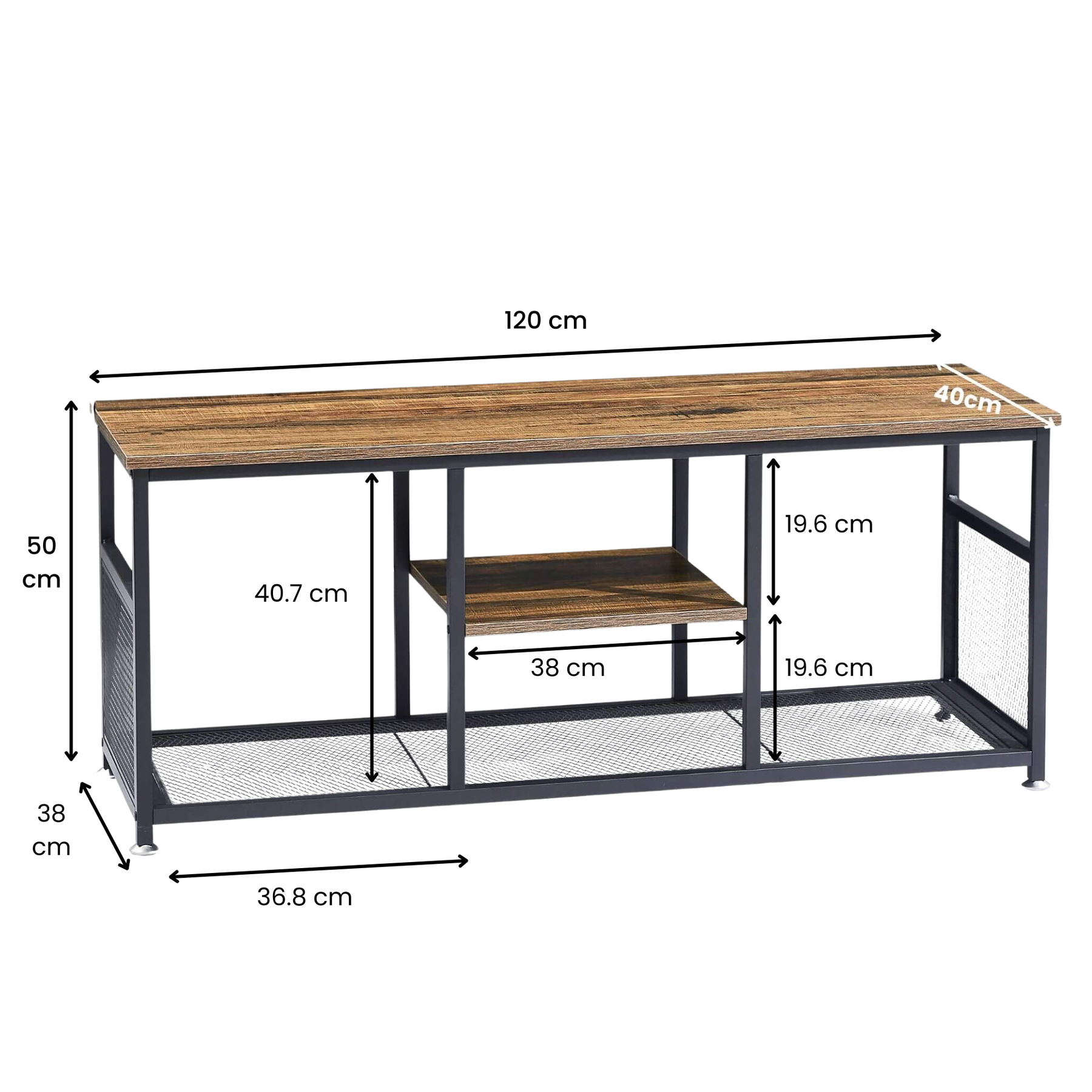 Stay organised with two mesh shelves that provide ample room for electronics, DVDs, or decorative pieces. Its smart layout keeps your space clutter-free while maintaining a sleek look.