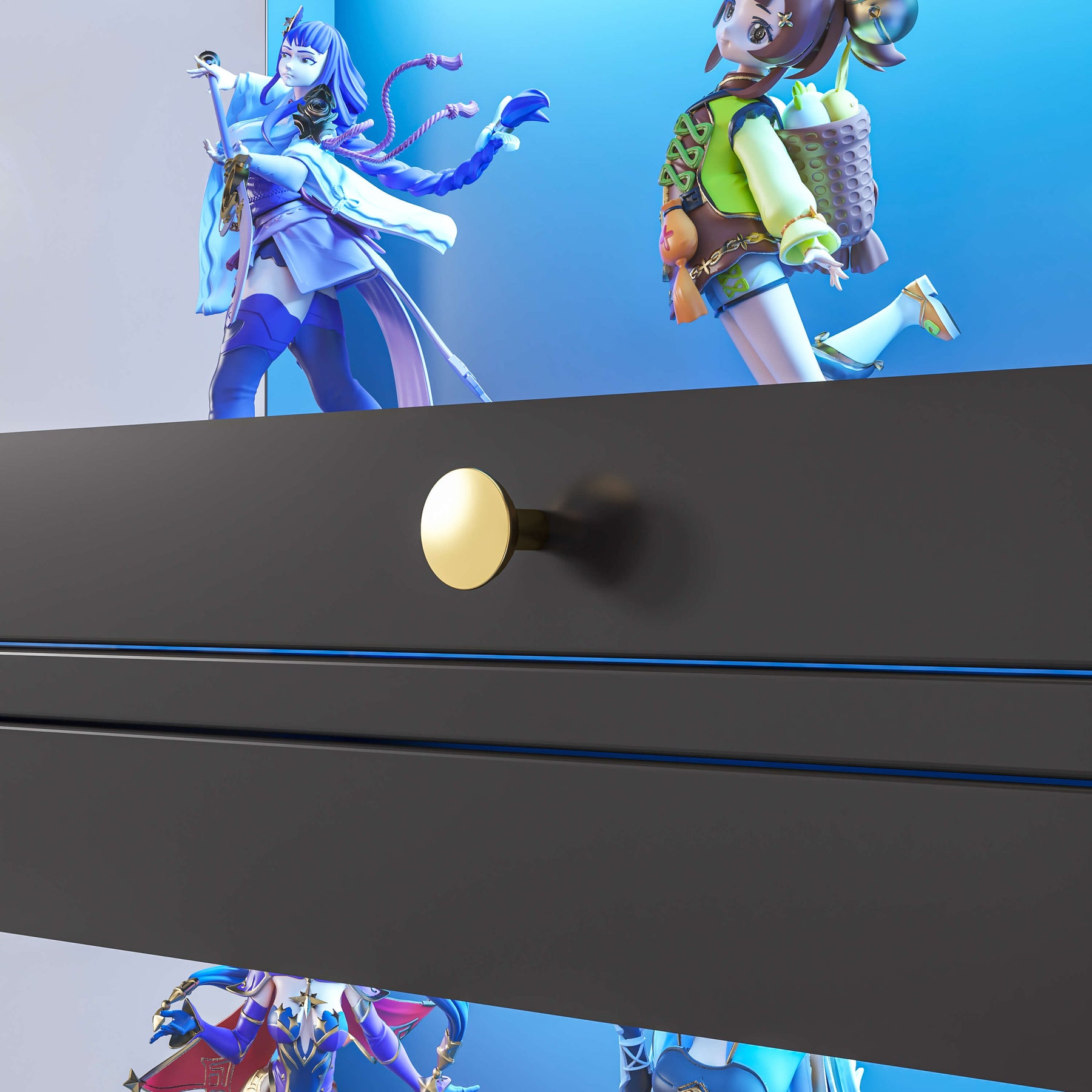 - 1 × Display Cabinet with Flip-Up Glass Door – Black